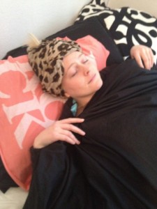 og det kan man se på det leopardtørklæde en venlig sjæl, louise hansen hed den, har rullet stramt rundt om mit hoved.